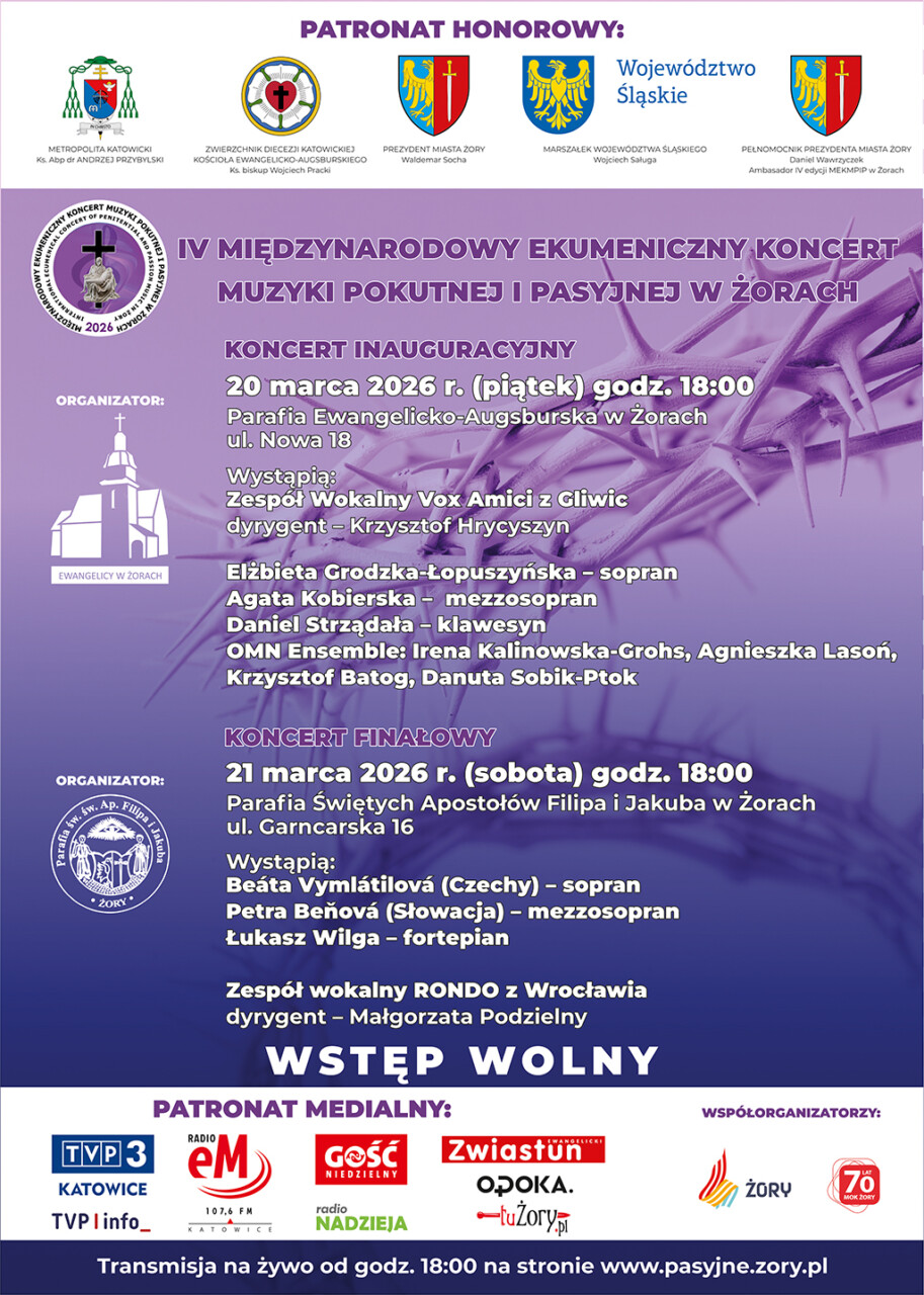 który odbędzie się 20 i 21 marca 2026 r. w kościołach żorskich parafii: Ewangelicko-Augsburskiej oraz Św. Apostołów Filipa i Jakuba.