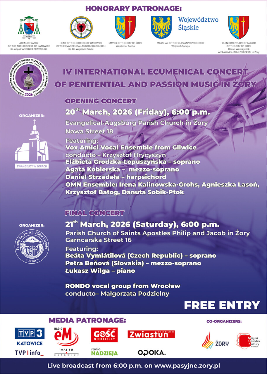 which will be held on April 4 and 5, 2025 in the churches of the Zory parishes: Evangelical-Augsburg and St. Apostles Philip and James.