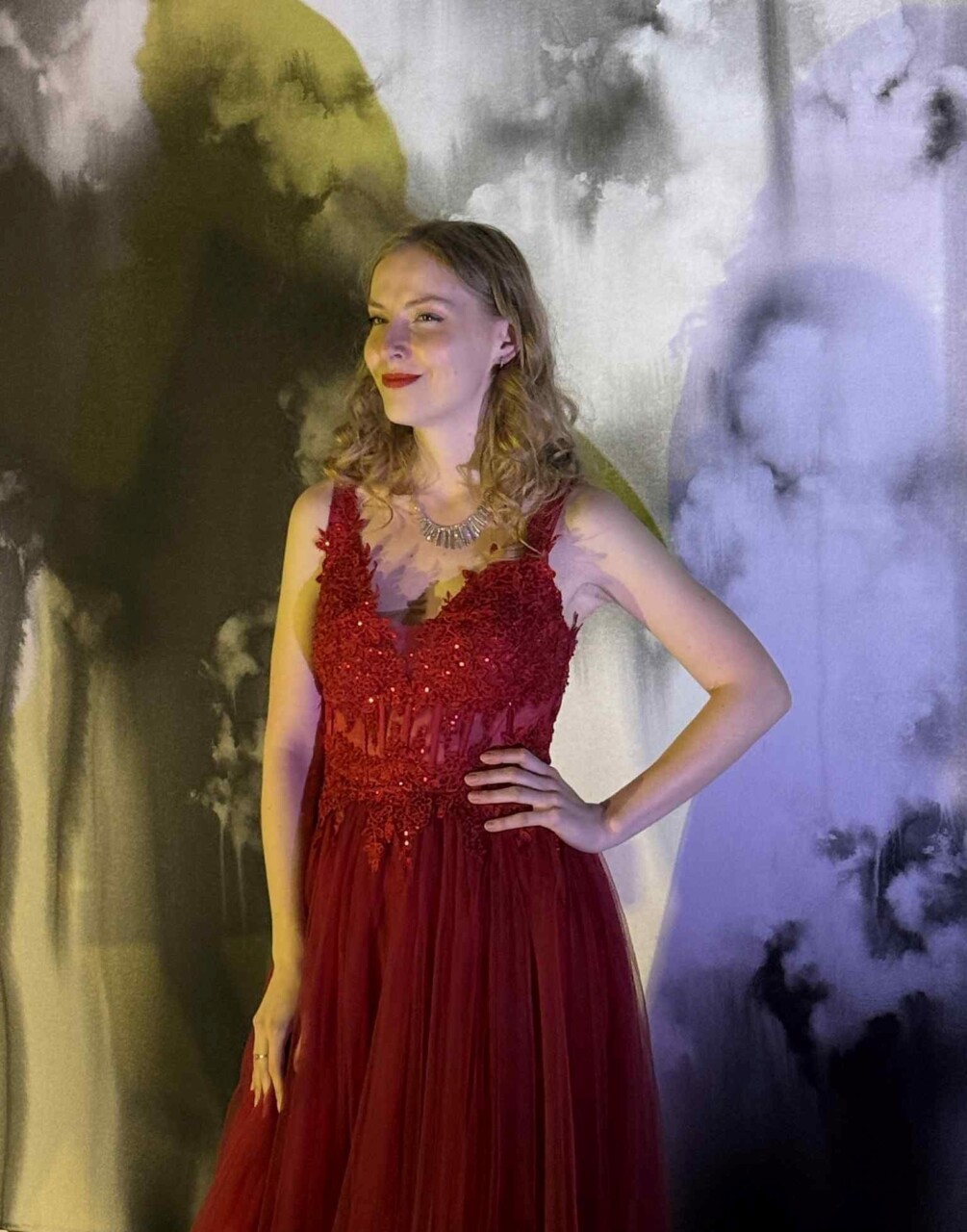 The year 2025 brought her a number of significant artistic achievements. As a soloist, she performed with the Academic Baroque Orchestra, singing the alto part in J.S. Bach’s Was Gott tut, das ist wohlgetan BWV 99, conducted by Marek Pilch. That same year, she achieved significant success at the international singing competition Pražský pěvec, winning second prize in a fierce competition among young vocalists.